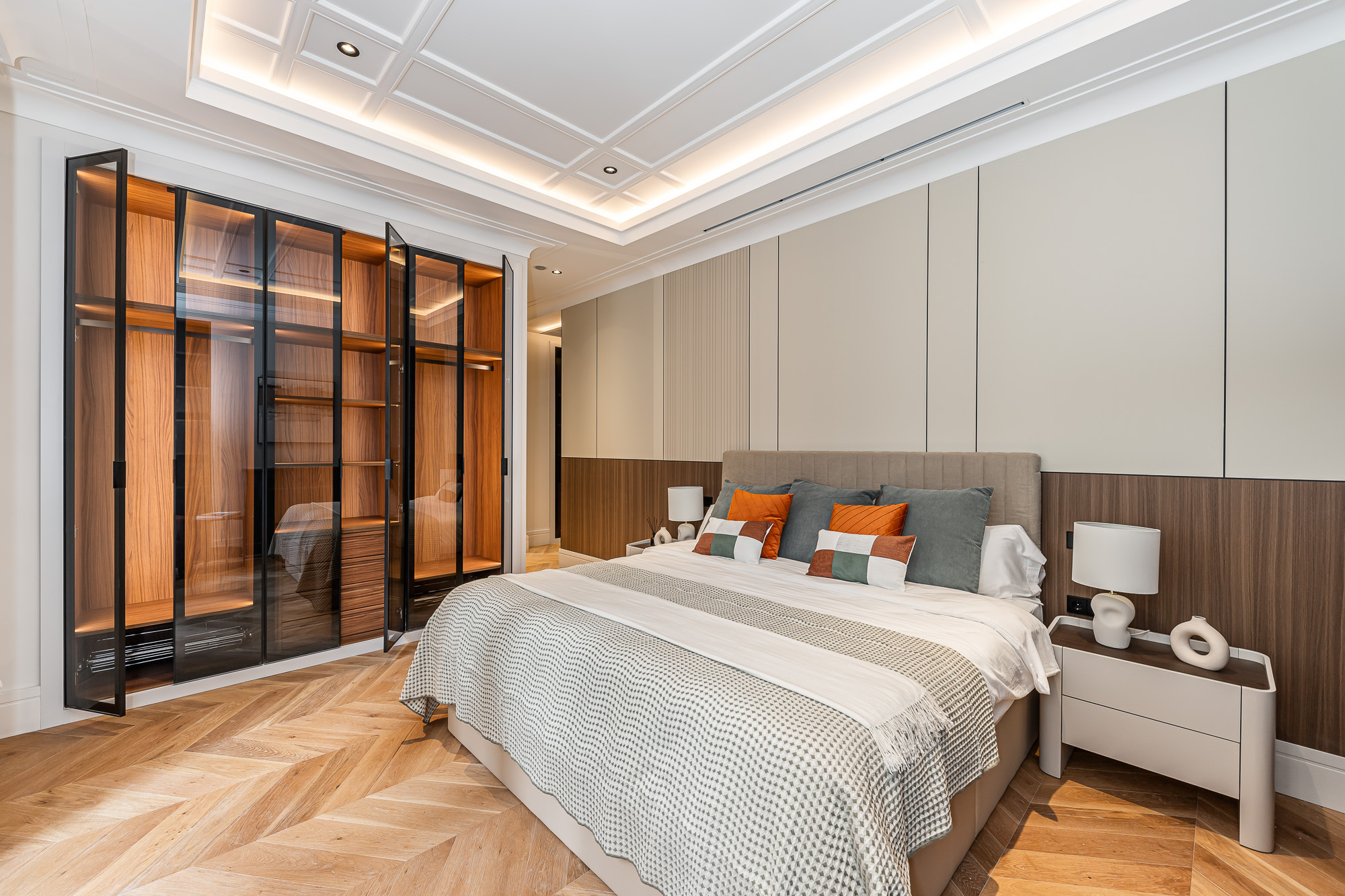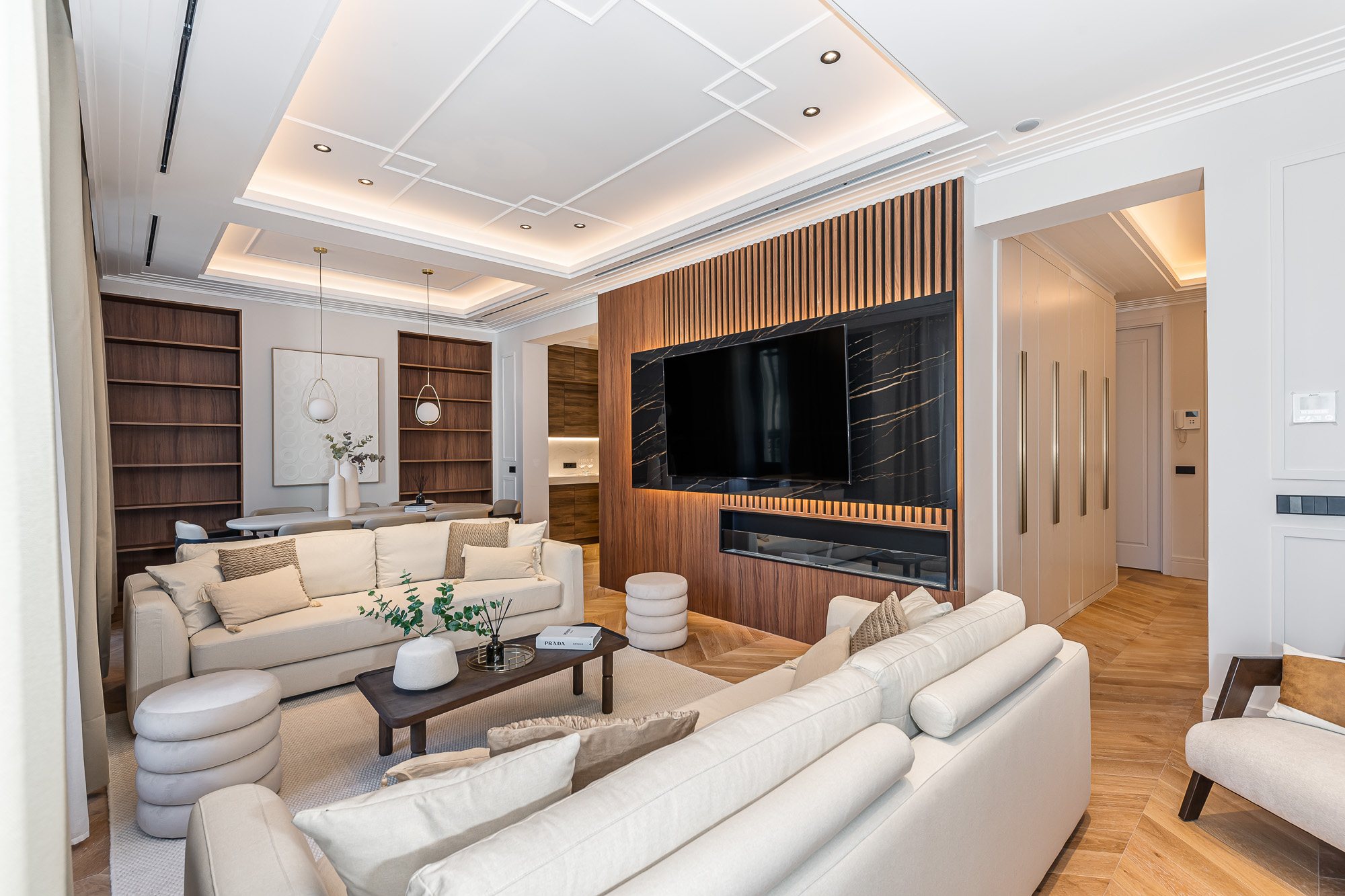 Cada detalle —desde los techos trabajados hasta los tiradores empotrados— refleja la filosofía de Velzia: crear hogares donde el lujo se sienta en la armonía de los materiales y la luz.