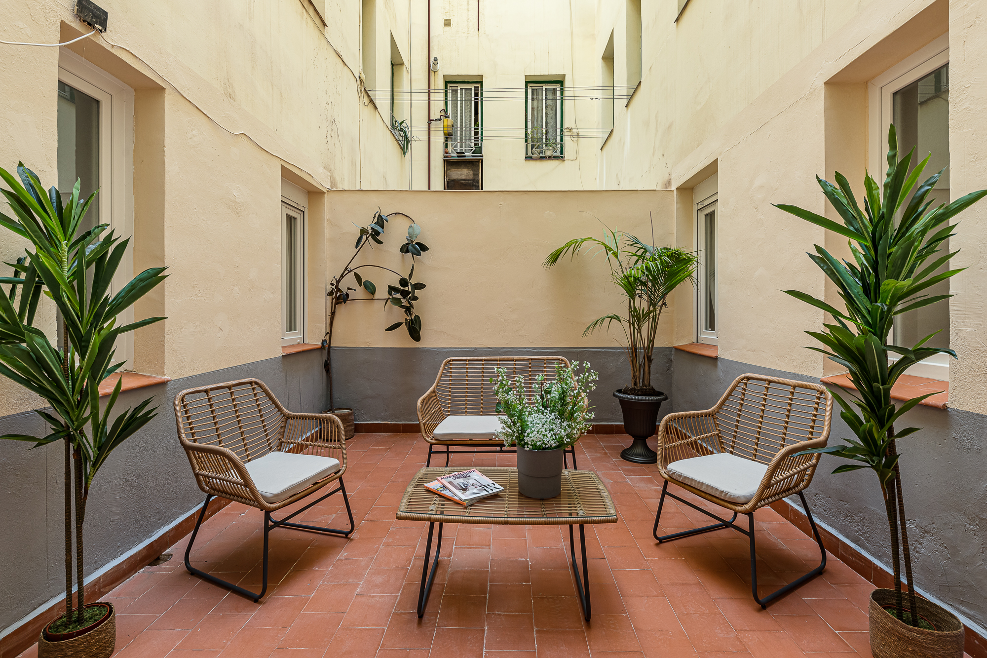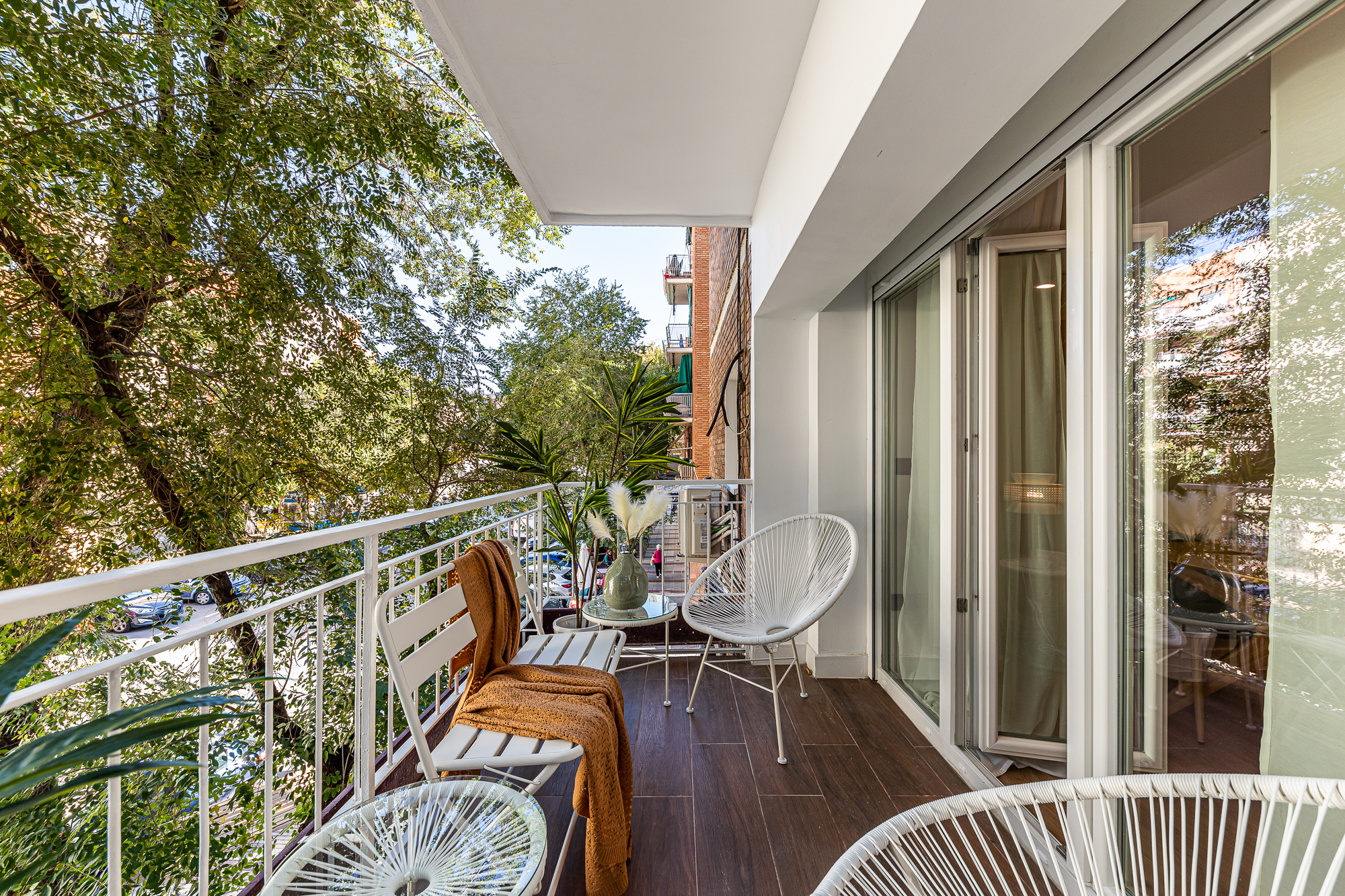 Una terraza pequeña, pero cuadrada nos ofrece la oportunidad de colocar unas butacas más grandes. Estas de mimbre además de bonitas son más cómodas si quieres pasar toda la tarde al aire libre.