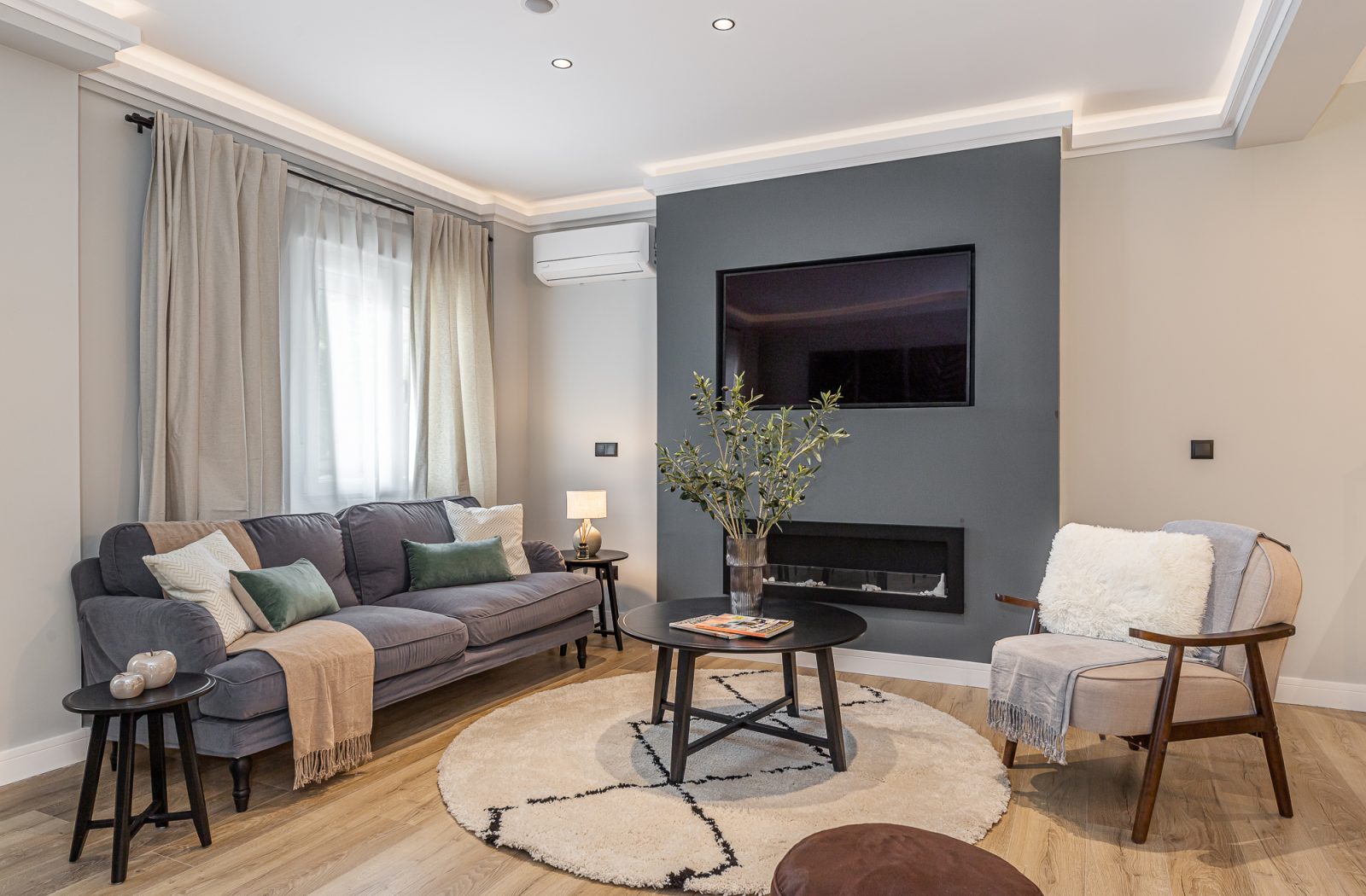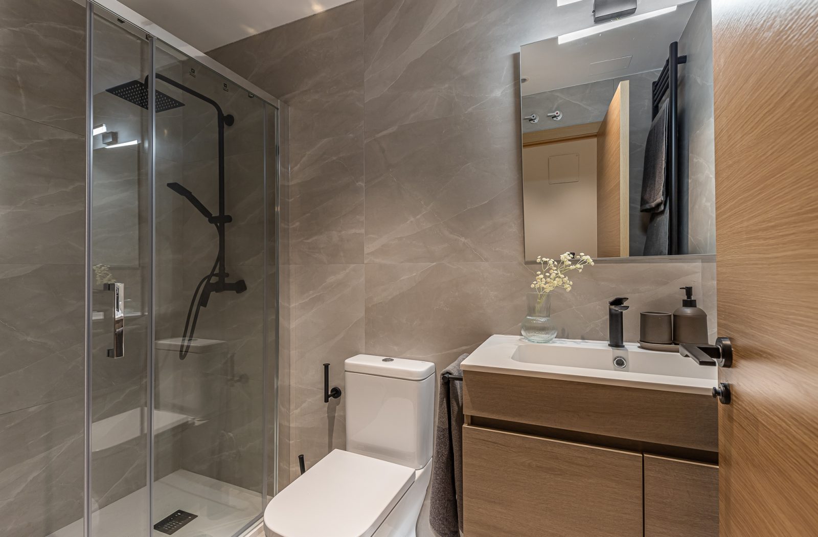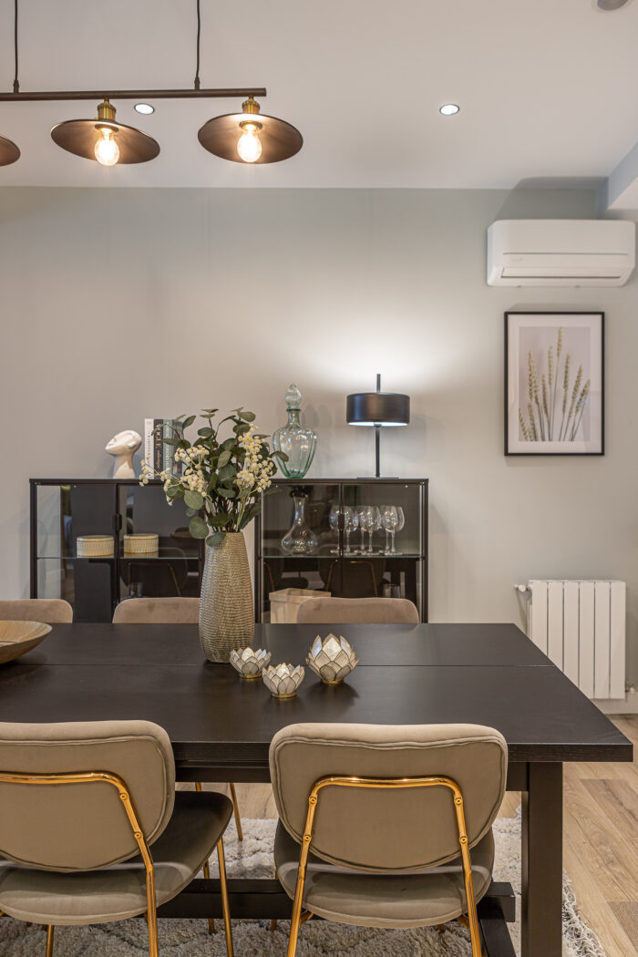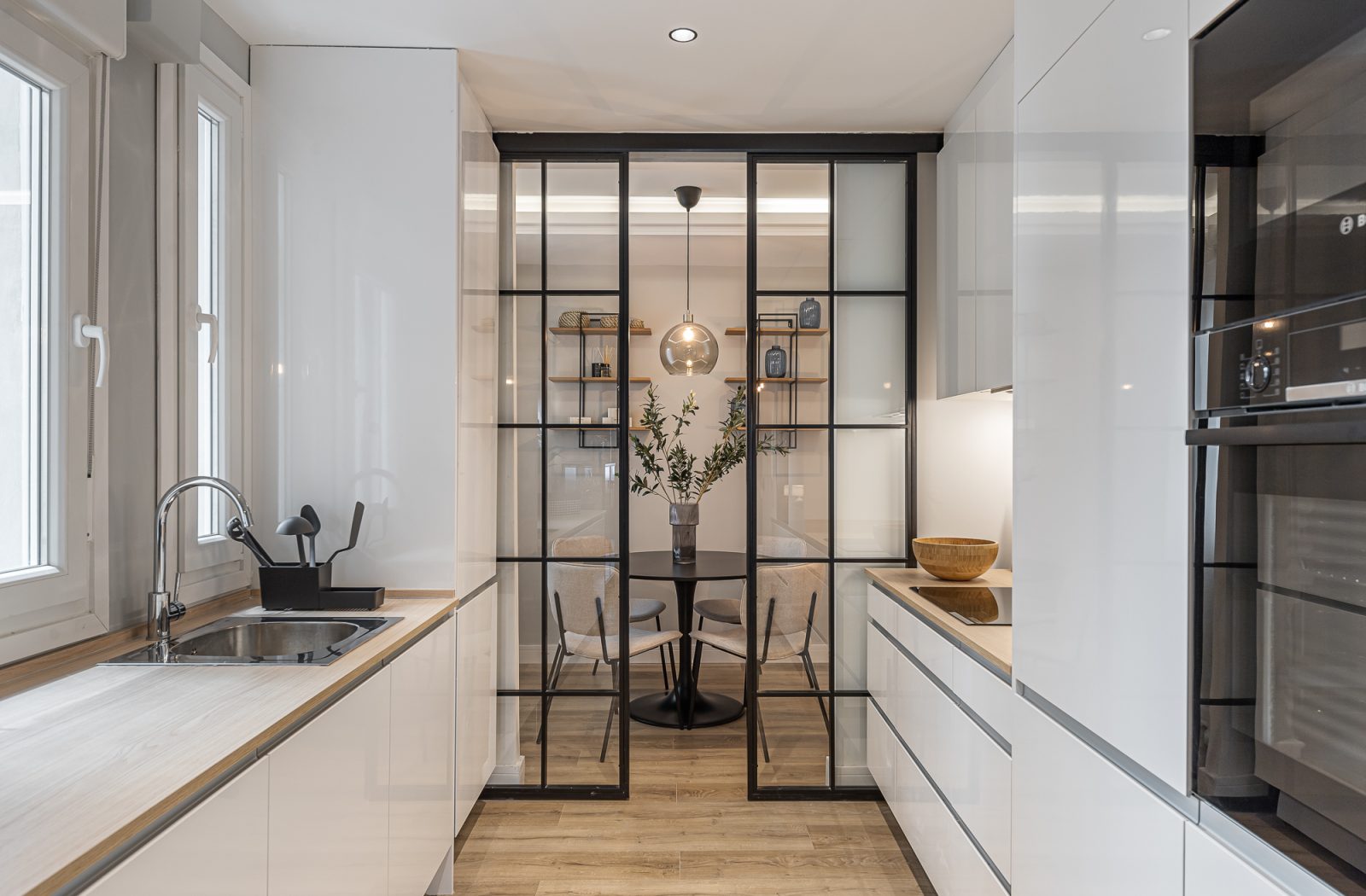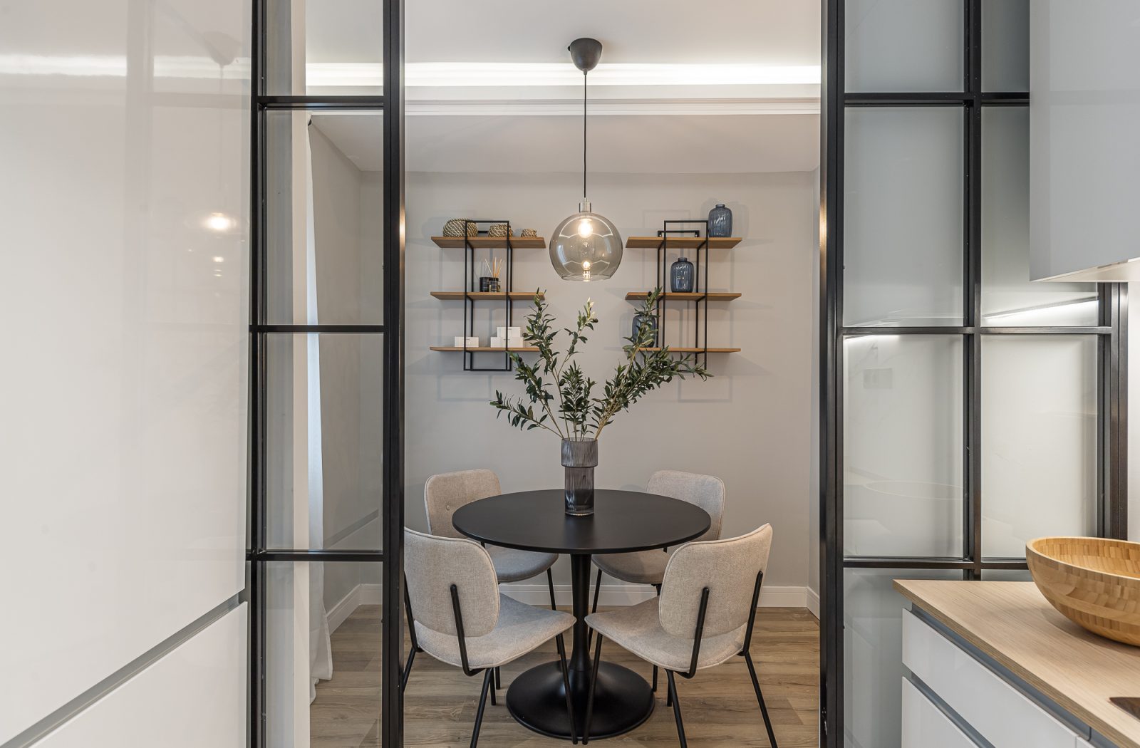 Reforma integral de un piso de 115 m², de 2 habitaciones, 2 baños y terraza, ubicado en la primera planta de un edificio residencial sito en el barrio de Cuatro-Caminos, distrito de Tetuán (Madrid).