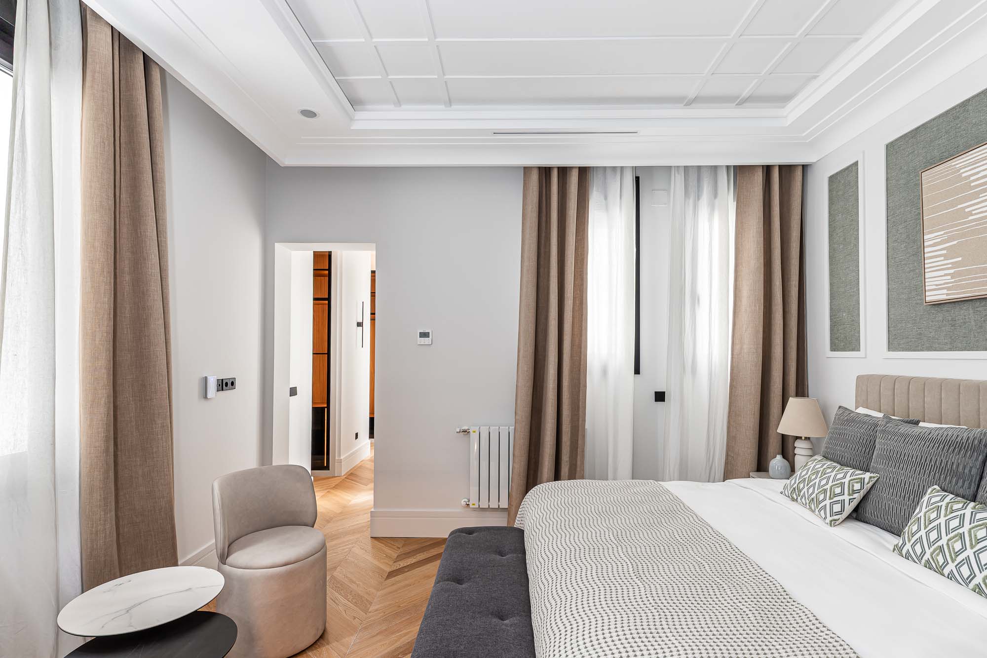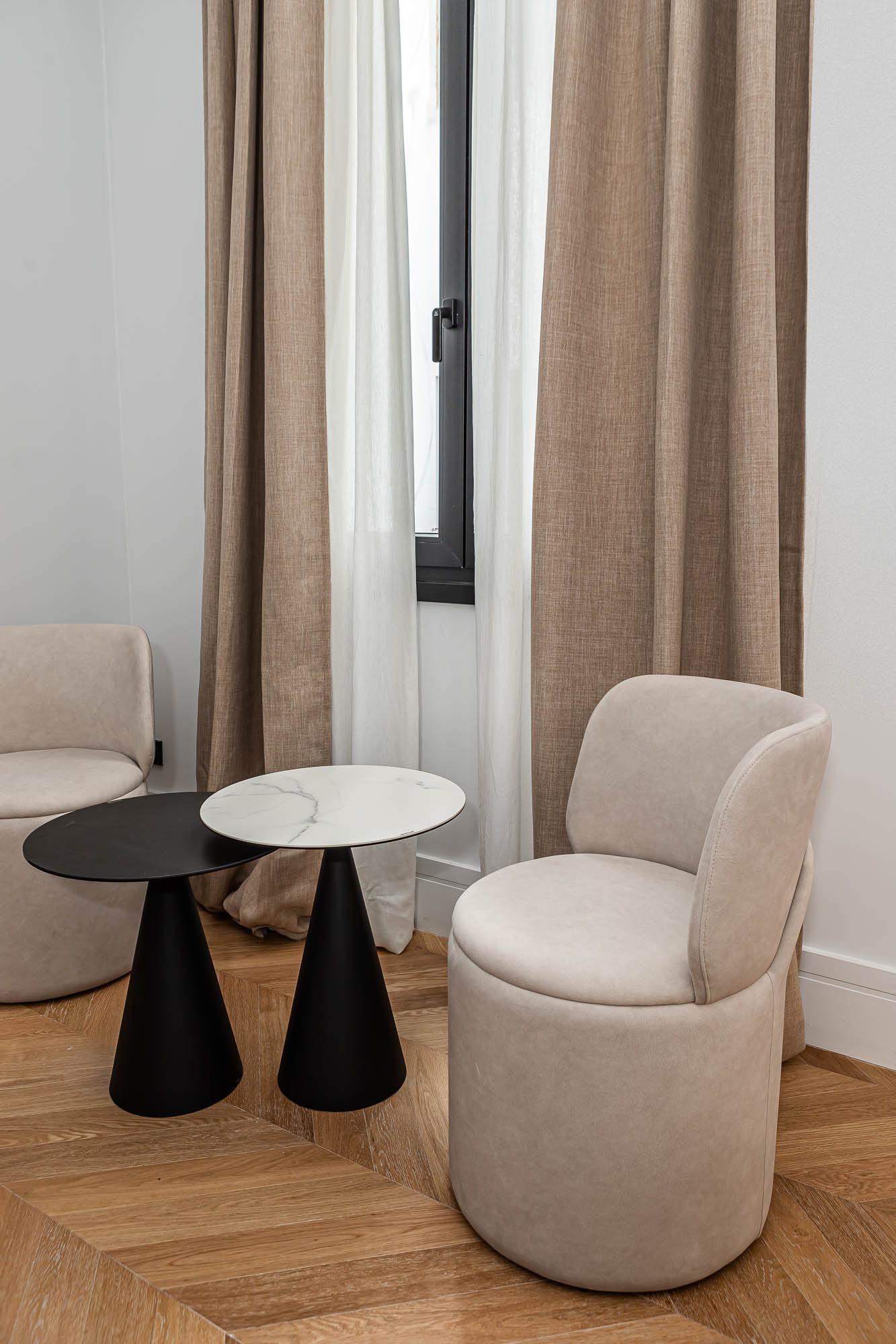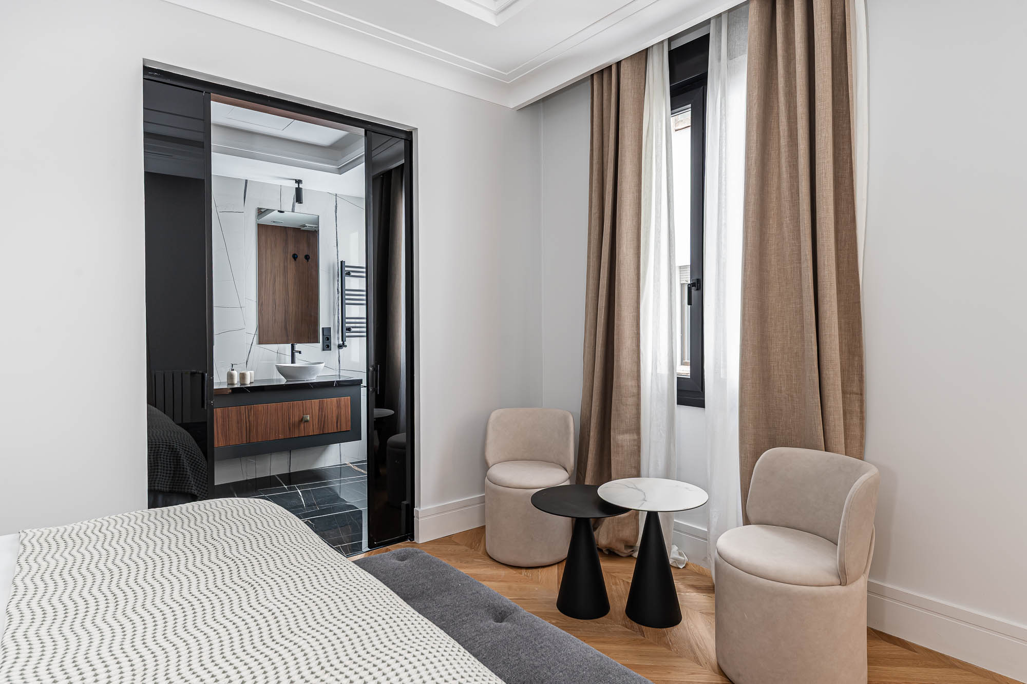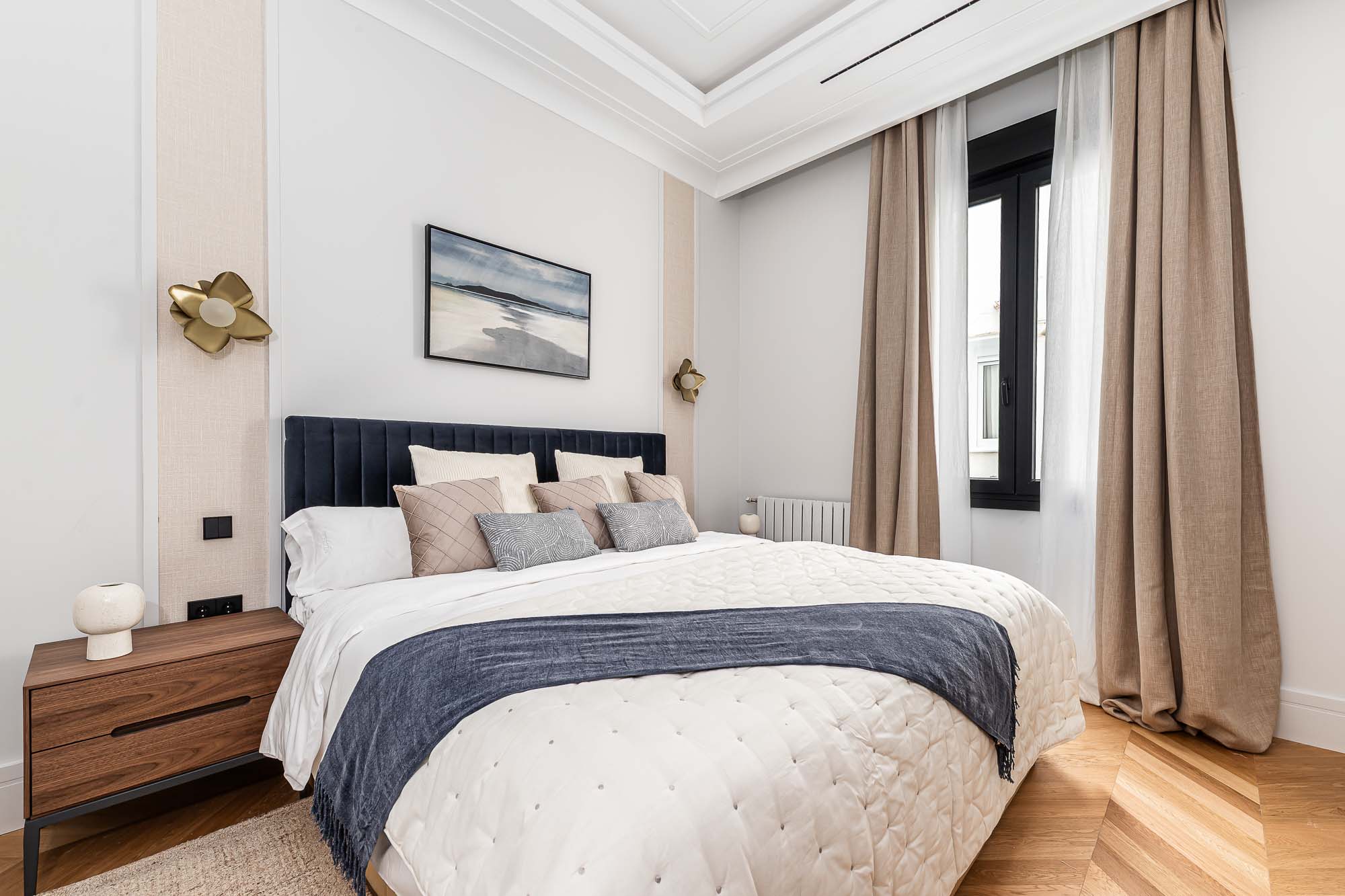 Velzia reinterpreta la esencia clásica del edificio con una propuesta contemporánea donde conviven la madera, la luz natural y los detalles arquitectónicos originales. Cada estancia fue diseñada para transmitir serenidad, equilibrio y sofisticación atemporal.