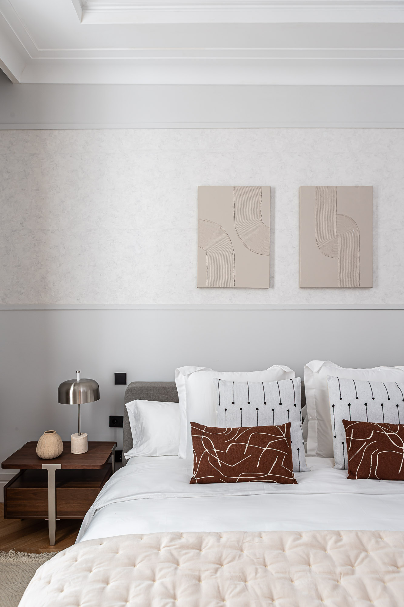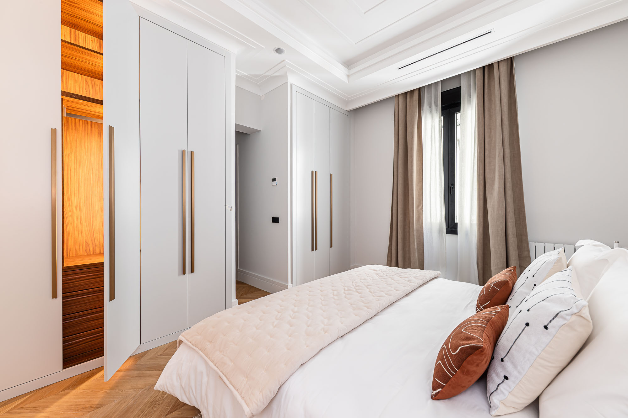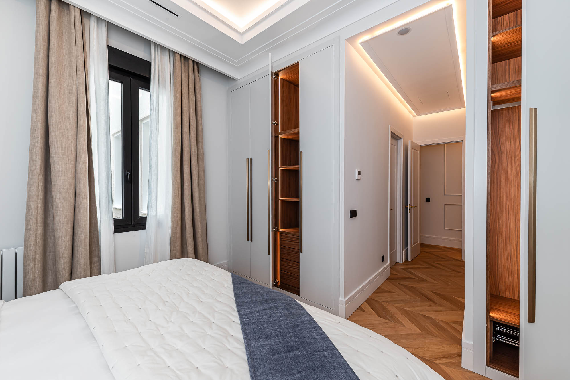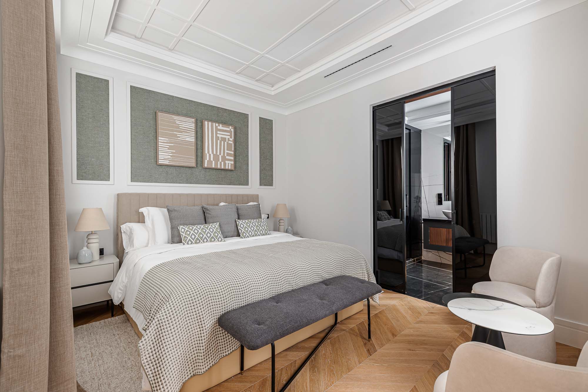 Velzia reinterpreta la esencia clásica del edificio con una propuesta contemporánea donde conviven la madera, la luz natural y los detalles arquitectónicos originales. Cada estancia fue diseñada para transmitir serenidad, equilibrio y sofisticación atemporal.